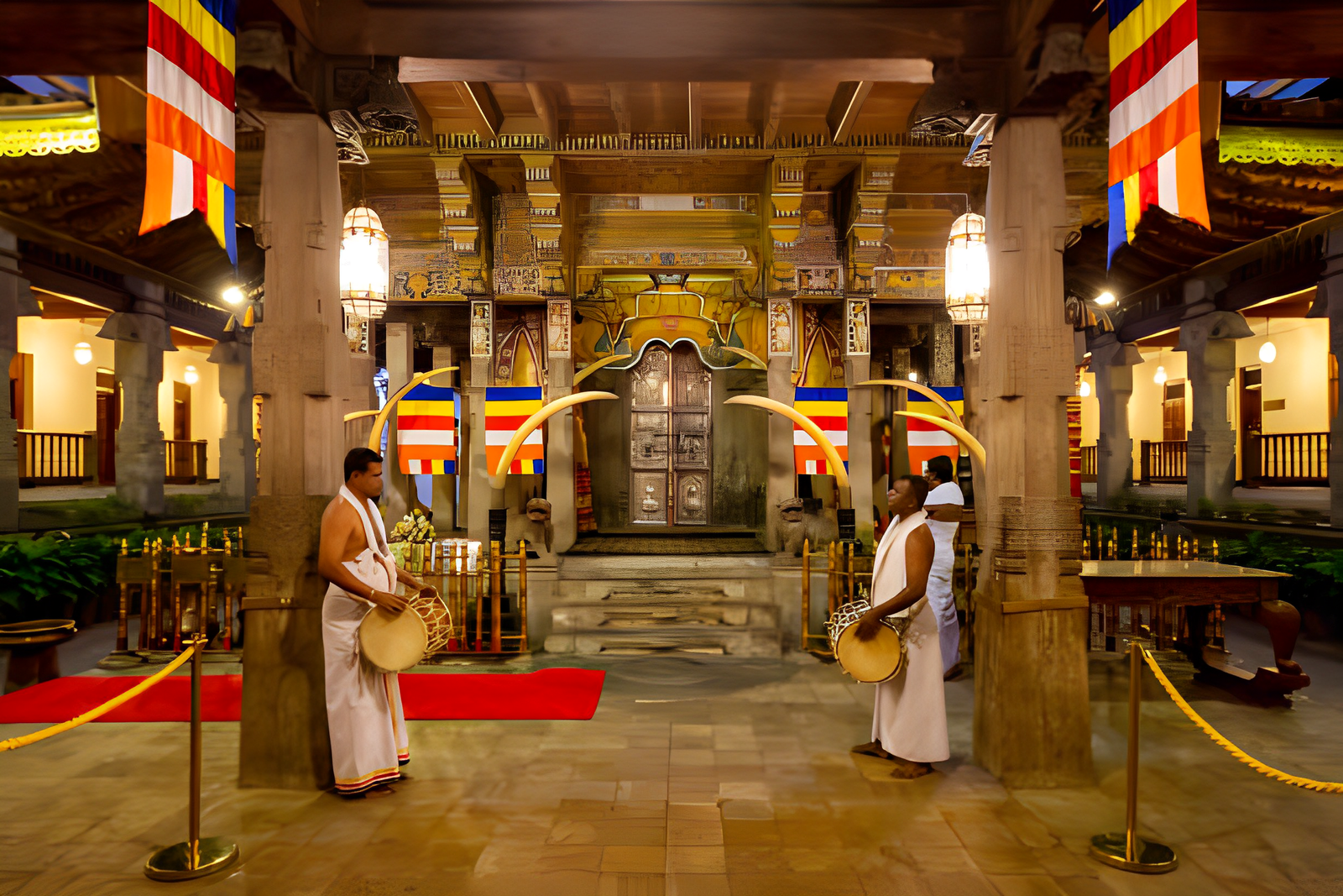 Kandy: Sri Dalada Maligawa, known in English as the Temple of the Sacred Tooth Relic, is a Buddhist Temple located in Kandy. Religious services, poojas, are held daily at dawn, midday and in the evening and can be viewed by visitors. The services are accompanied with traditional music and drumming. You can also visit the Royal Palace which now operates as the Kandy museum.